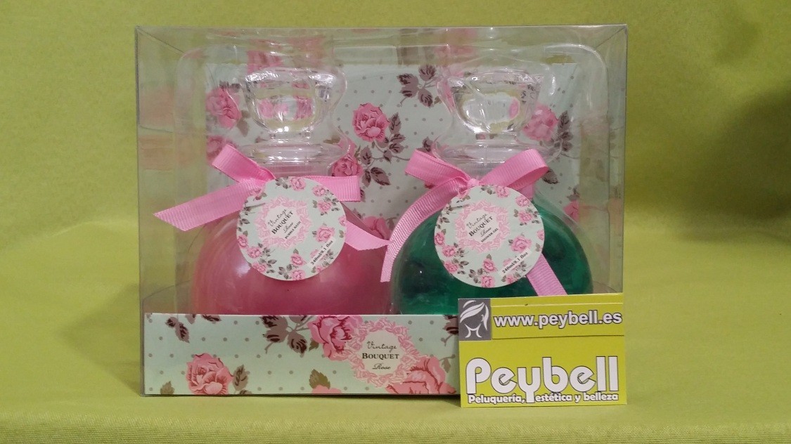 Estuches de dos Geles uno de Rosas, 240ml, y otro de Lavanda240ml, Botella decoracion