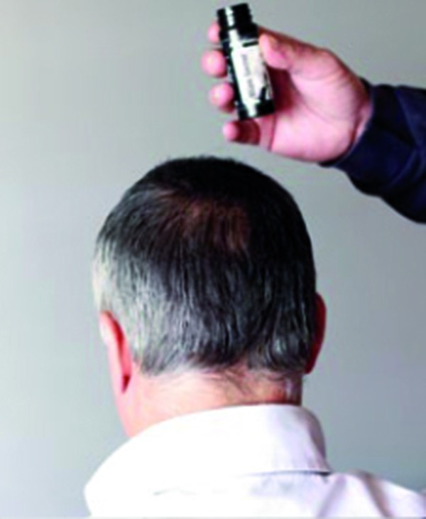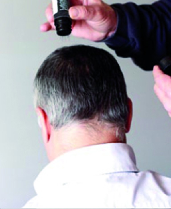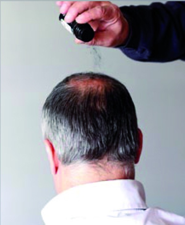 - Agitar el envase suavemente encima de las áreas con escasez de pelo y utilizar el peine para acabar de repartir el producto de forma homogénea.