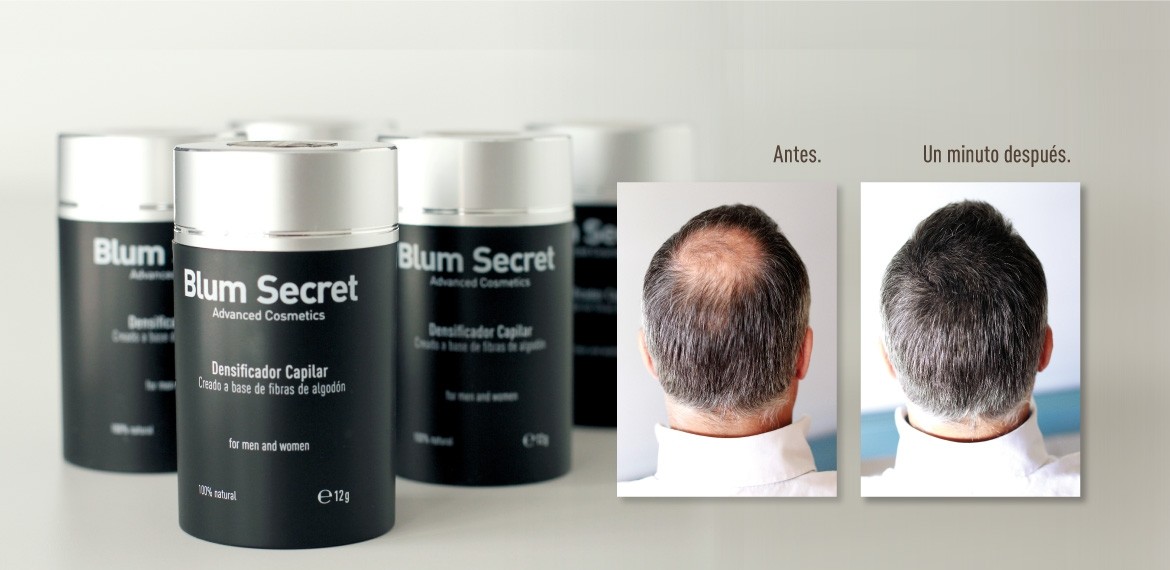 Blum Secret es la nueva generación de cosmética capilar profesional 100% natural a base de fibras de algodón que disimula la escasez de pelo localizada tanto en hombres como mujeres.