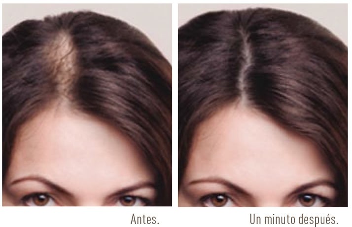 - Agitar el envase suavemente encima de las áreas con escasez de pelo y utilizar el peine para acabar de repartir el producto de forma homogénea.