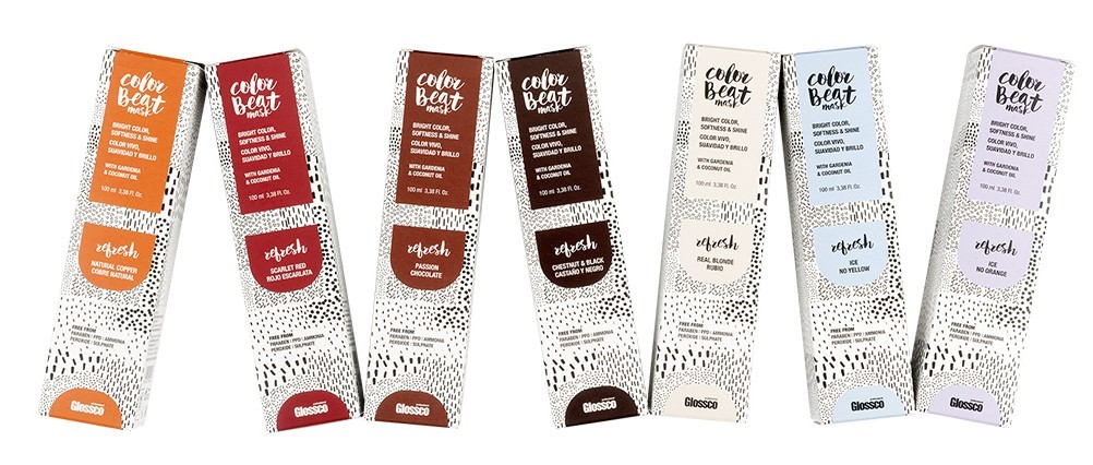 Color Beat es la coloración semipermanente en crema de Glossco Professional. Con 17 tonos distintos, refresca tu color o crea increíbles tonalidades fantasía y pastel al mismo tiempo que hidratas y cuidas tu cabello. Color Beat colorea y aporta un brillo y suavidad extraordinarios. La carta se divide en Refresh colors, 7 tonos que revitalizan el color entre tintes, dan vida al cabello y lo cuidan con un extra de nutrición y brillo y los 9 tonos Fantasy Colors permiten crear y personalizar el color de cabello, aplicándolos en su versión 100% pura o mezclándolos con Clear & Gloss Mask para crear colores pastel. Consigue un color único, con una aplicación muy sencilla, cuidando al máximo tu cabello.