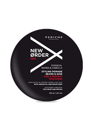 Pomada fijadora de intensidad media para cabello y barba, a base de aceites de origen natural como el argán y el de semilla de uva.